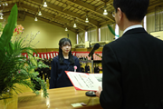 生徒会は餅まきとカラオケ大会の司会、ボランティア部は受付、eスポーツ部はeスポーツ体験ブース、吹奏楽局はステージ演奏を行いました。