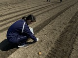 ラグビー部はホタテ漁の時に使う八尺(330kg)の漁具を人力で引く
